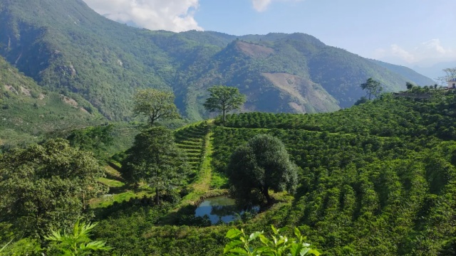 咖啡树错落有致地分布,木棉花、凤凰木、柳树等高大乔木挺拔而立,为咖啡树撑起阴凉,也调节着局部小气候,让咖啡树在相对温和的环境中生长。核桃树、柿子树、桃树、芒果树等兼具经济价值与生态价值的果树穿插种植,它们在不同的季节绽放花朵、结出硕果,不仅丰富了这片土地的产出,更与咖啡树、高大乔木相互映衬,形成立体的生态景观。这样的复合生态系统,保护了众多鸟类、昆虫的栖息家园。它们在这里觅食、繁衍,形成了一个完整而和谐的生态链,让这片土地充满蓬勃的生命力,也让咖啡在自然的怀抱中汲取独特的风味。